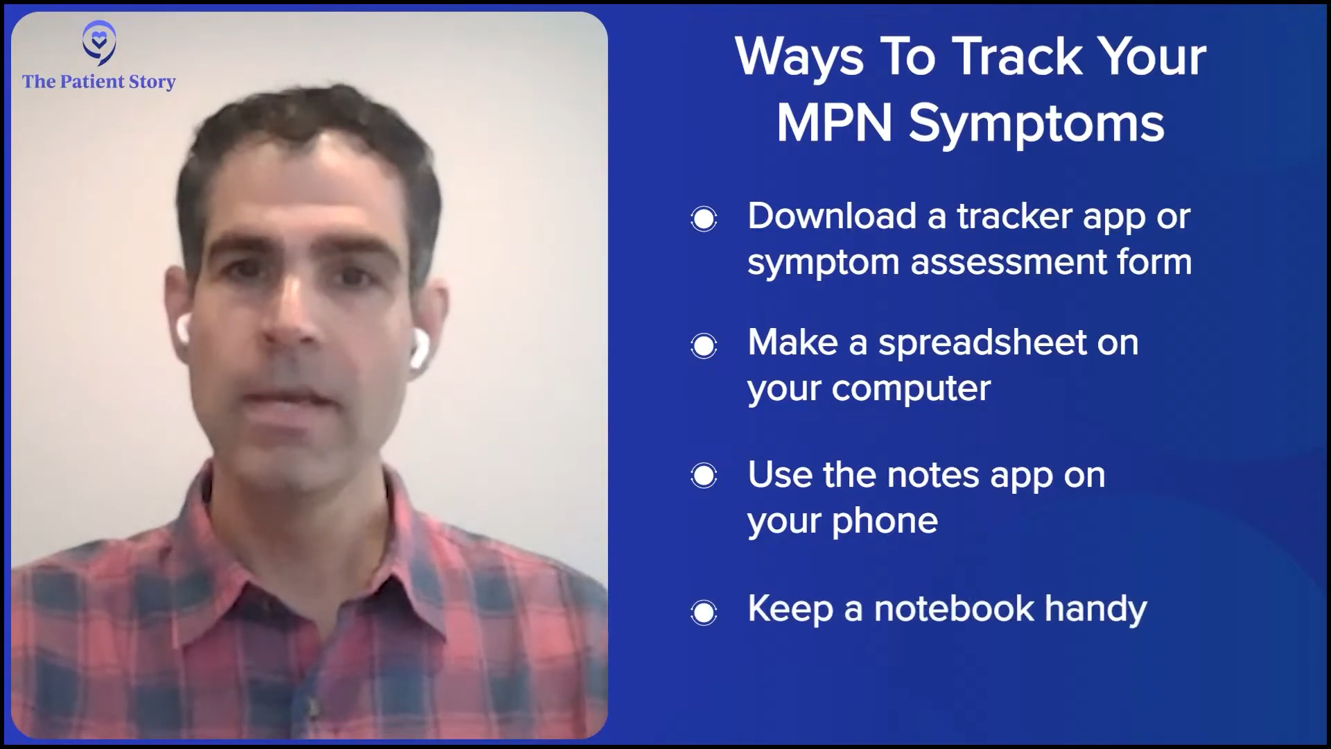 Ruth: To move on to final reflections, what advice would you give to someone who was just diagnosed with an MPN about tracking symptoms specifically? Is there anything you’ve learned over time about how to talk to your doctors so they hear what’s going on and see that you’re a knowledgeable patient?