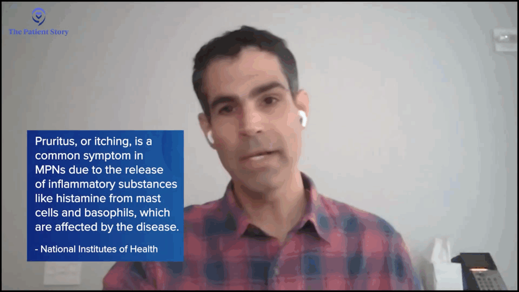 Nick Napolitano: Hi, Ruth. My name is Nick. I’m a polycythemia vera patient. I was diagnosed in 2016, so I’m approaching the 10-year mark, which is a big deal. Like you, Ruth, I’ve experienced a range of symptoms throughout my journey — everything from itching to bone pain. I have experienced different treatment options and am currently on a drug, doing very well.