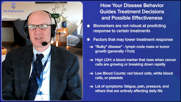 Nicky: What triggers treatment? Is it usually high tumor burden or bulky disease affecting organs, or are there other reasons?