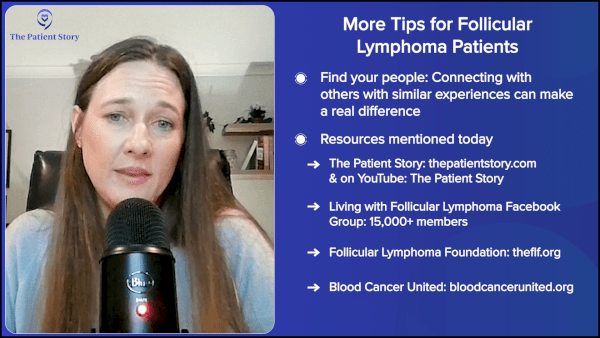 You’re going to hear from two people who know about this this firsthand, but from different points of view. Our moderator is Nicky Greenhalgh, a follicular lymphoma patient herself who also started the Living with Follicular Lymphoma Facebook group, one of the largest FL patient communities in the world.