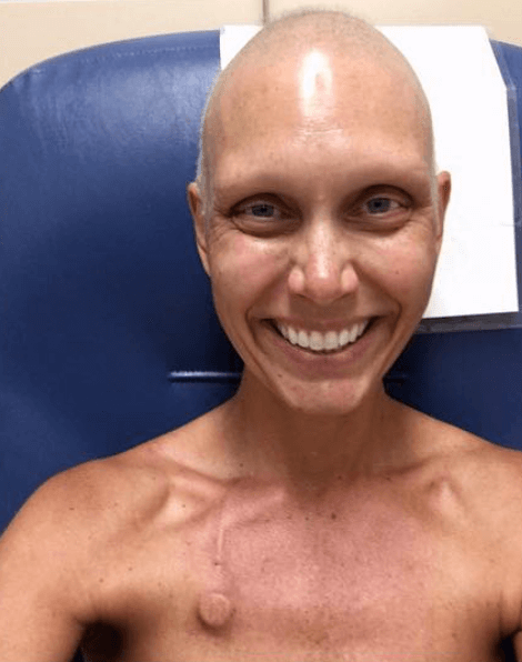 I asked her, “Do you think people don’t know that I’m sick? Because they all know the reason I don’t have hair. Mommy has this port here, they know I’m sick, and they’re not going to make fun of me because they know I have cancer.”